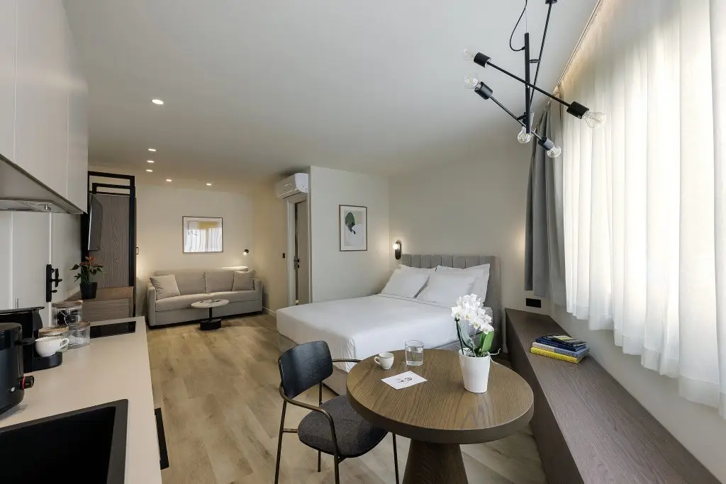Die Apartments im master Plaka Athen verbinden Stil und Funktionalität zu einer harmonischen Einheit und bieten eine ruhige Rückzugsmöglichkeit inmitten des pulsierenden Stadtviertels. Jede der 14 Ferienwohnungen strahlt eine moderne, minimalistische Ästhetik aus – mit klaren Linien, neutralen Farbtönen und sorgfältig ausgewählten Einrichtungsdetails, die eine beruhigende Atmosphäre schaffen.