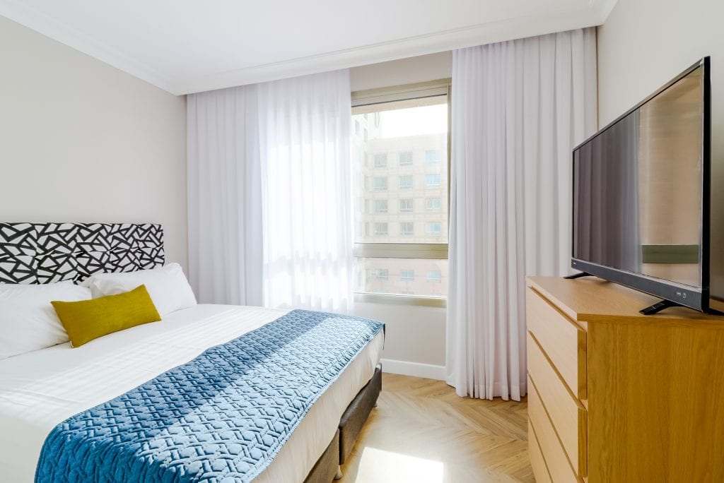 Jedes Schlafzimmer verfügt über ein extragroßes Bett und das Sofa im Wohnzimmer lässt sich leicht in ein Bett für zwei Personen verwandeln. Erleben Sie während Ihres gesamten Aufenthalts höchsten Komfort mit erstklassiger Bettwäsche, weichen Kissen und gemütlichen Bettdecken in Hotelqualität.