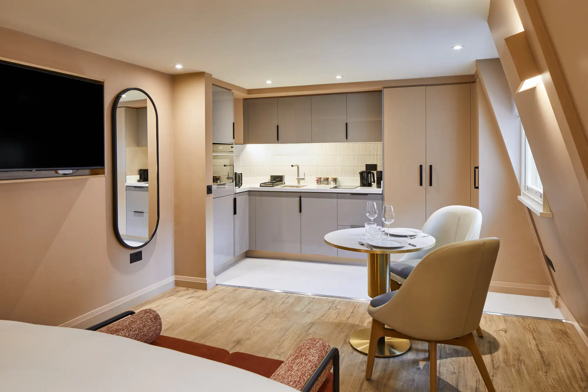 Die klare Raumaufteilung und die funktionalen Möbel schaffen eine harmonische Atmosphäre – ideal zum Entspannen nach einem erlebnisreichen Tag in London.