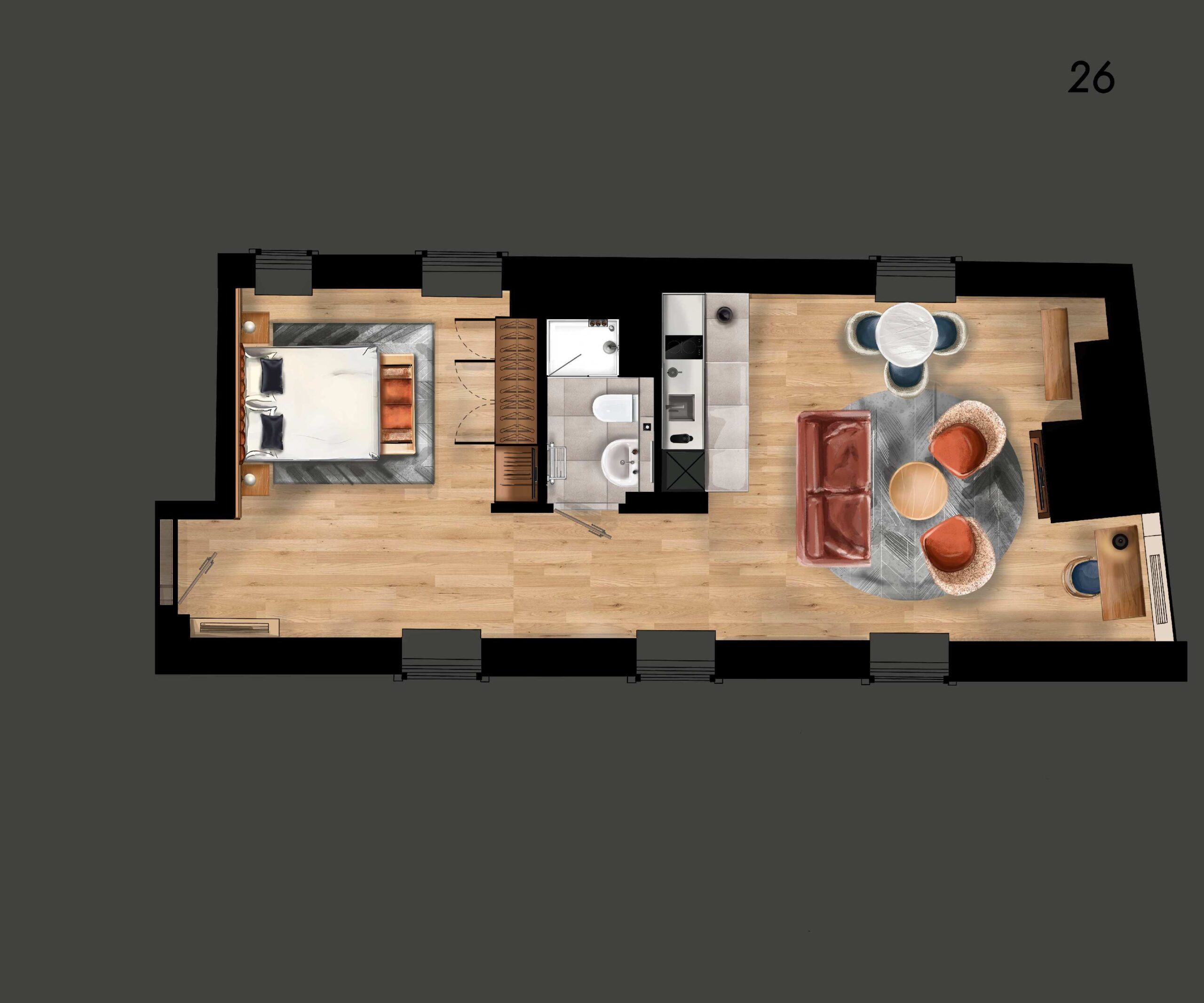 Das hochmoderne Serviced Apartment überzeugt auf 62 m² mit einem eleganten Wohnkonzept, das wie geschaffen ist für Familien oder kleine Gruppen bis zu 4 Personen. Die Ferienwohnung vereint Funktionalität mit der beruhigenden Ästhetik skandinavischen Designs. Warme Erdtöne, edler Holzboden und natürliche Materialien schaffen eine einladende und harmonische Atmosphäre.