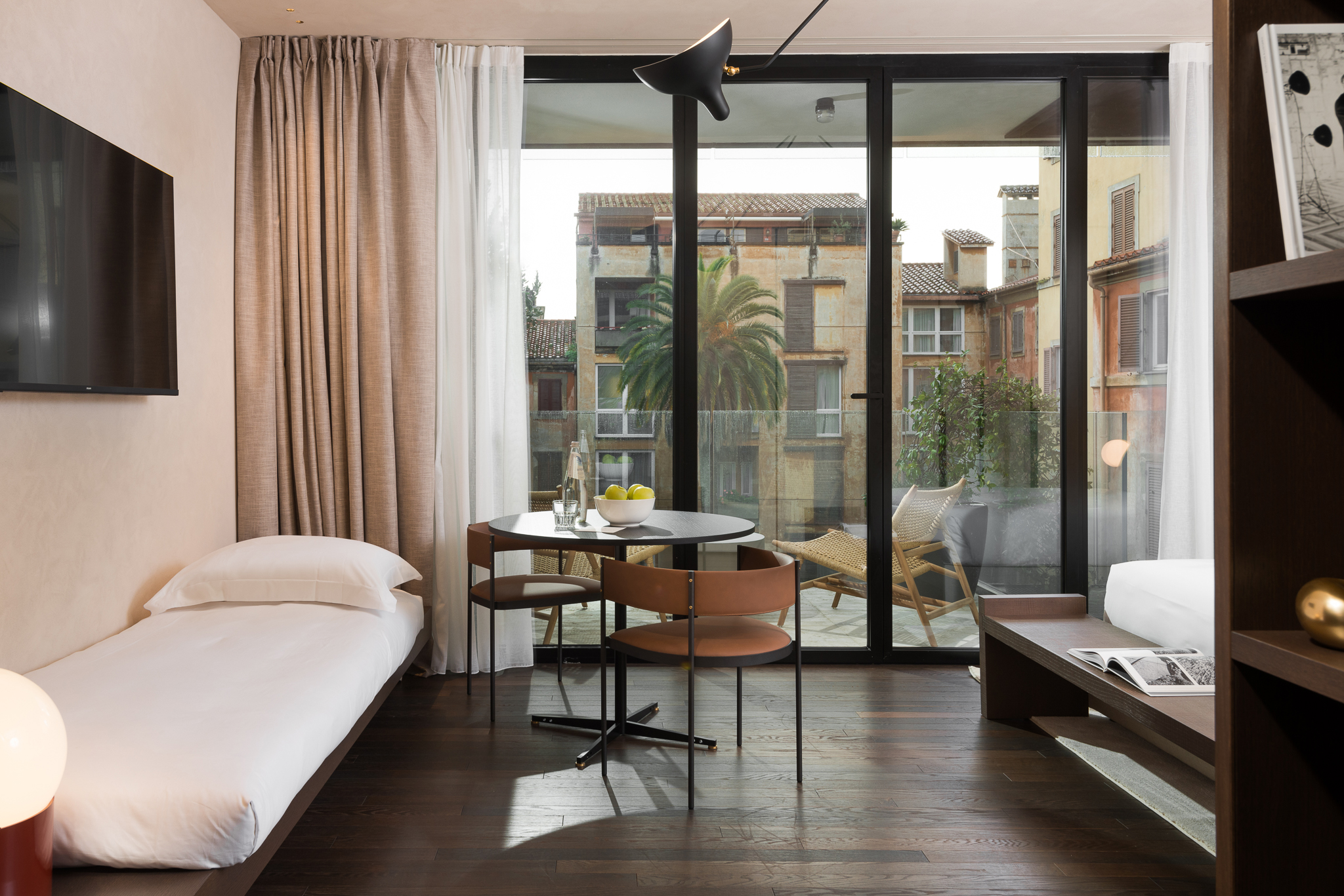 Im Innenbereich finden Sie einen geschmackvoll eingerichteten Raum mit modernen Annehmlichkeiten wie High-Speed-WLAN, Klimaanlage und Kaffeemaschine. Ob Sie Ihren morgendlichen Espresso auf der Terrasse genießen oder sich für eine erholsame Nacht einrichten, das Studio mit Balkon garantiert Ihnen einen unvergesslichen Aufenthalt im Herzen Roms.