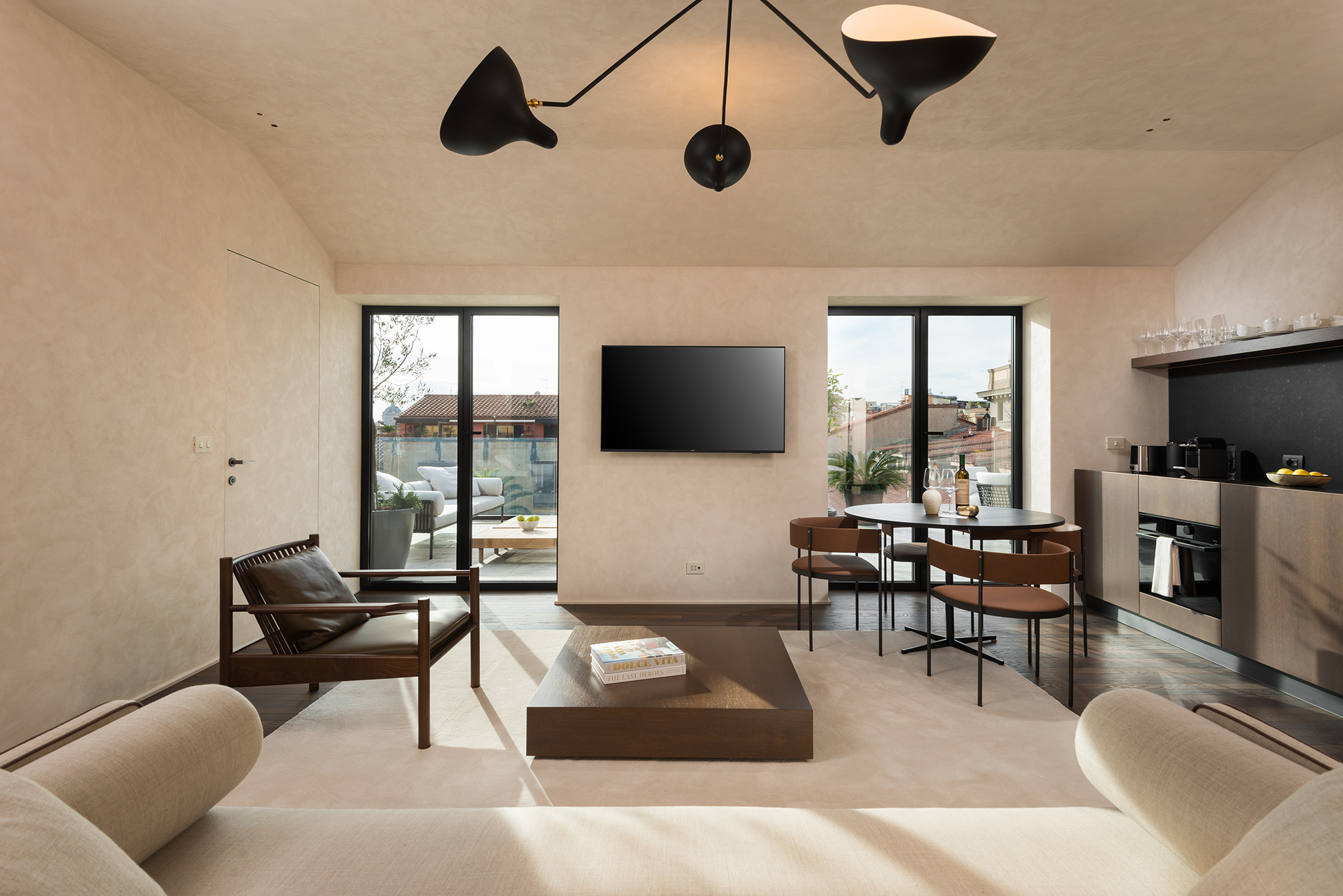 Willkommen im Zwei-Zimmer-Penthouse mit großer Terrasse im master Trevi, wo Luxus auf atemberaubende Ausblicke trifft. Dieses exquisite 71 m² große Penthouse mit einer weiträumigen 80 m² großen Terrasse bietet Platz für bis zu 4 Gäste. Perfekt für Familien oder Gruppen, bietet dieser Rückzugsort eine raffinierte Mischung aus Komfort und Stil im Herzen von Rom.