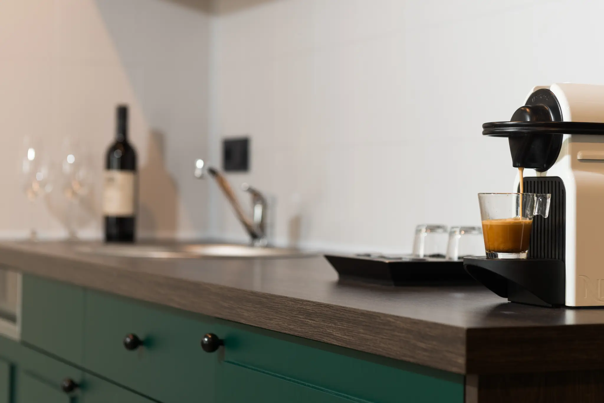 Entspannen Sie sich in dieser heimeligen Suite, die in natürliches Licht getaucht ist und über ein separates Schlafzimmer für Ihre Privatsphäre verfügt. Der geschmackvoll eingerichtete Wohnbereich verfügt über einen Esstisch, Stühle und ein gemütliches Schlafsofa, das Platz für weitere Gäste bietet. Mit ihren schönen neuen Parkettböden und großzügigen Schränken verbindet diese Suite nahtlos Stil und Funktionalität. Die voll ausgestattete Küche mit Espressomaschine und Geschirrspüler ermöglicht es Ihnen, eine gute Tasse Kaffee zu genießen und Ihre Mahlzeiten selbst zuzubereiten. Unterhalten Sie sich mit dem Smart-TV und bleiben Sie mit High-Speed-WLAN in Verbindung, sodass Ihre Bedürfnisse in der Freizeit und im Beruf erfüllt werden.
