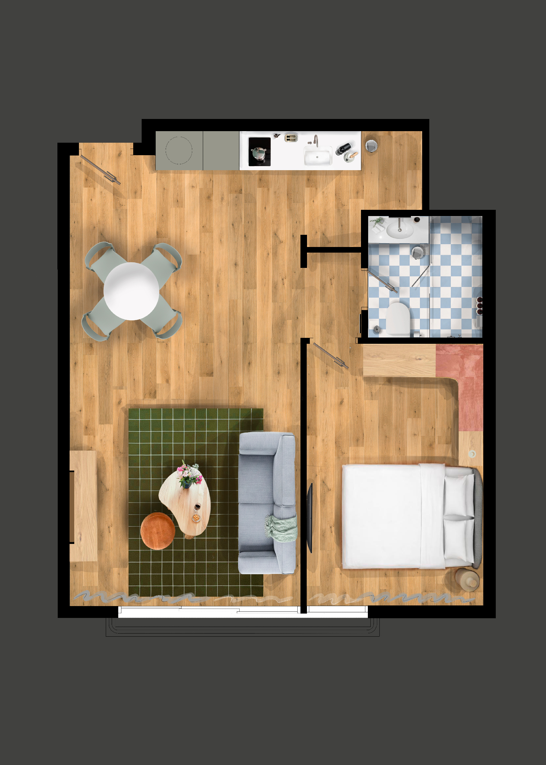 Entspannen Sie sich in unserem geräumigen 46 m² großen Ein-Zimmer-Apartment, ideal für bis zu 4 Gäste. Dieses Apartment eignet sich sowohl für kurze als auch für längere Aufenthalte und verfügt über ein gemütliches Wohnzimmer und eine voll ausgestattete Küche. Genießen Sie eine Klimaanlage, einen Flachbildschirm-TV, kostenloses WLAN und die wichtigsten Annehmlichkeiten wie Pflegeprodukte, Kaffeemaschine, Waschmaschine und Trockner – einfach alles, was Sie für einen komfortablen Aufenthalt benötigen.